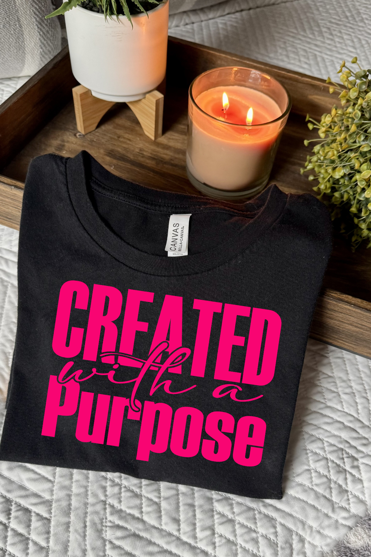 Created with a Purpose DTF Transfer Transform your apparel with this meaningful DTF transfer design. Perfect for t-shirts, hoodies, and more, this transfer delivers vibrant, long-lasting color that withstands washing and wear. The design speaks to intentional living and purposeful choices, making it ideal for faith-based brands, motivational merchandise, or personal expression. Easy to apply and built to last, this transfer brings professional-quality results to every project. Elevate your wardrobe with a message that matters.